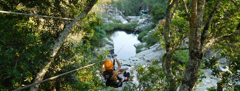 Is an adrenaline activity situated about 8 km east of the Stormriver Village on the N2 towards Port Elizabeth. It is most famous for its Waterfall Zipline Tour, which features eight slides that criss-cross the Kruis River gorge. You glide directly over three different waterfalls and through lush indigenous vegetation.